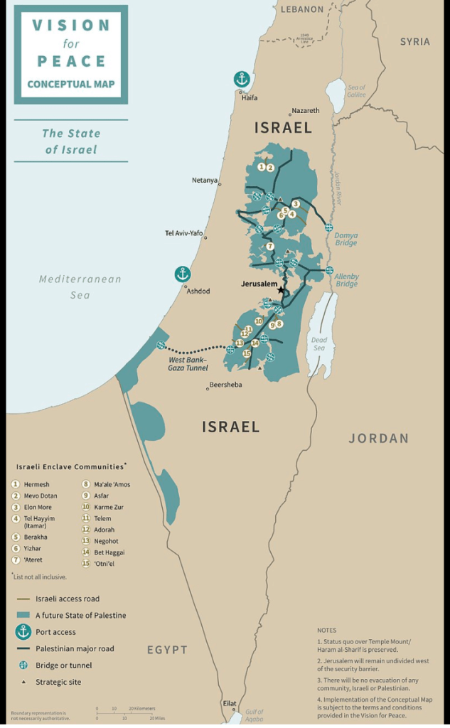 If he follows the Trump plan, he will be annexing the Jordan Valley and all the land surrounding all the Israeli settlements – about 30 per cent of the land. In terms of area it’s the size of Oxfordshire, but it includes not only all the most fertile land in the Jordan valley but also all the countryside between towns and villages, leaving the Palestine Authority in charge small islands in an Israeli sea.